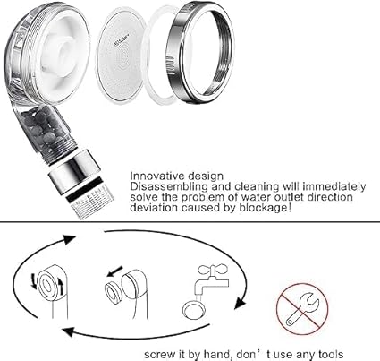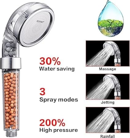 Filtered Hand Held Shower Head Ionic Head Help Reduces Hair Loss, Water Saving Shower Filter, Purifies Water, Remove Chlorine (3 MODES)