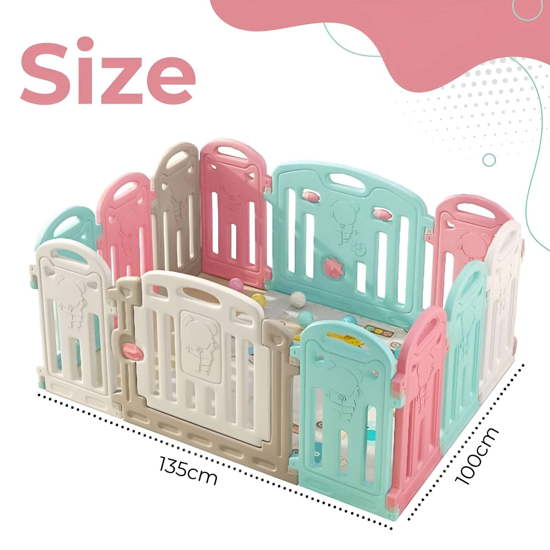 Introducing our Extensively Useful Baby Playpen - the ultimate solution for parents seeking safety, versatility, and peace of mind! Designed with both babies and toddlers in mind, this playpen offers a secure and spacious environment for little ones to explore, play, and learn. With its sturdy construction and safety features, including a locking gate, your child can safely enjoy independent playtime while you attend to other tasks.