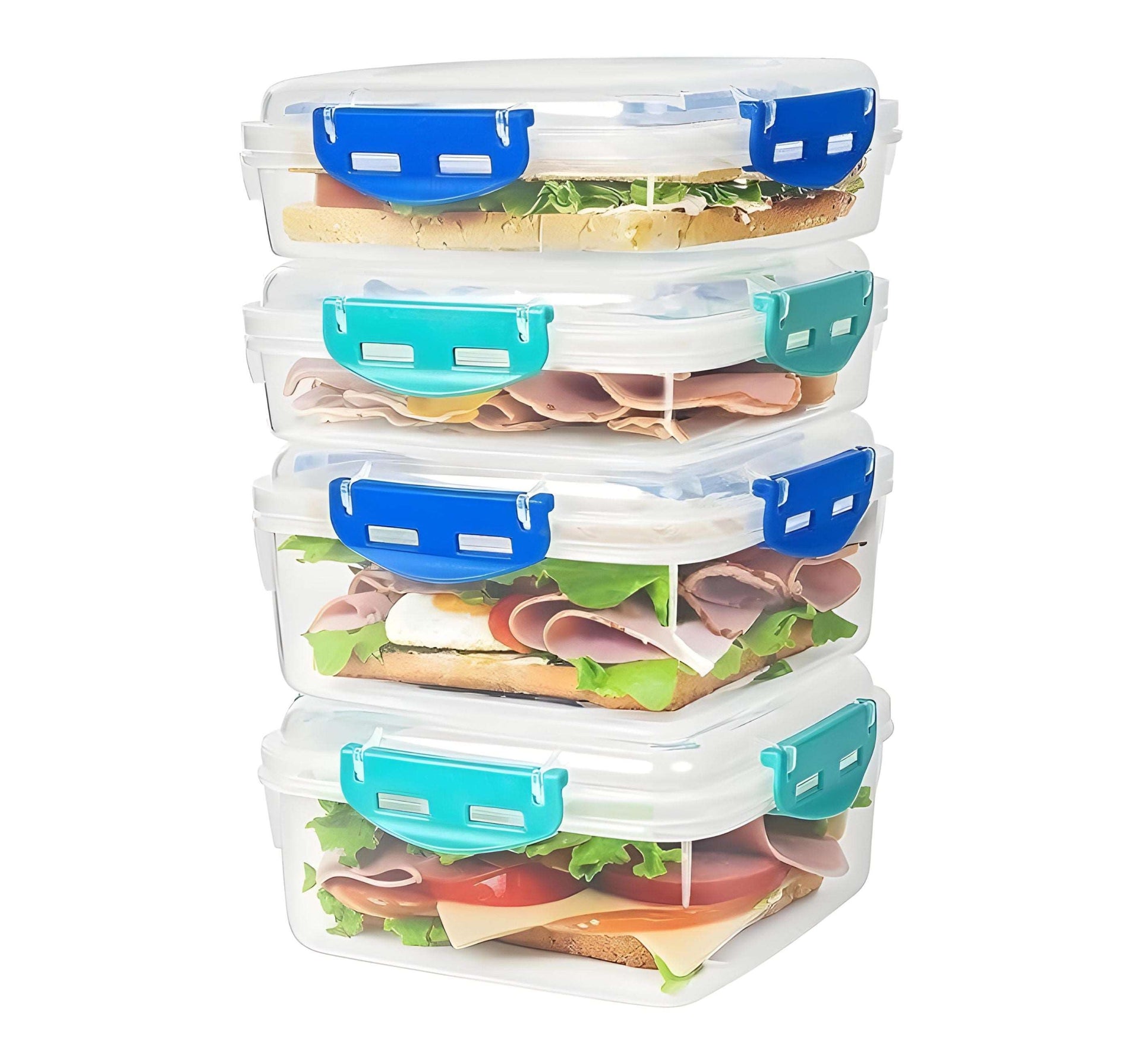WESOUQ™ 4 PCS Airtight BPA-Free Sandwich Containers - Microwave and Dishwasher Safe,