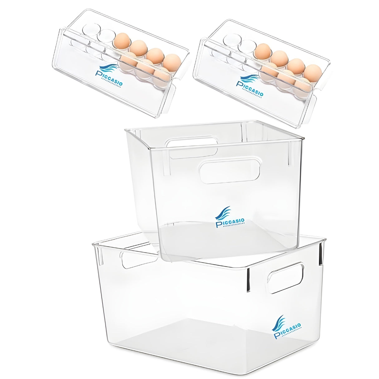 WESOUQ™ 2Pcs Plastic Fridge Refrigerator Organizer Bins With 2Pcs Egg Tray Food Storage Container Box