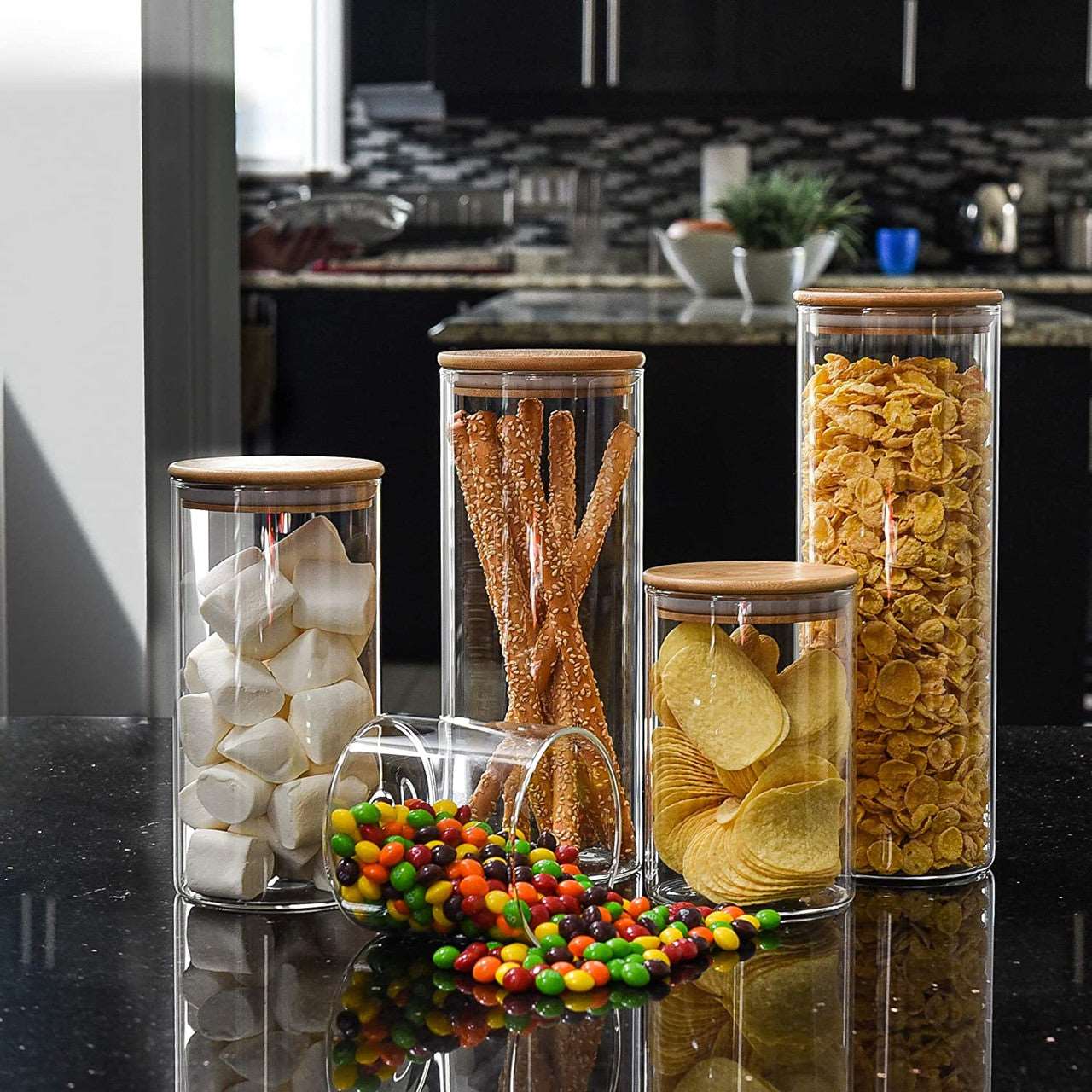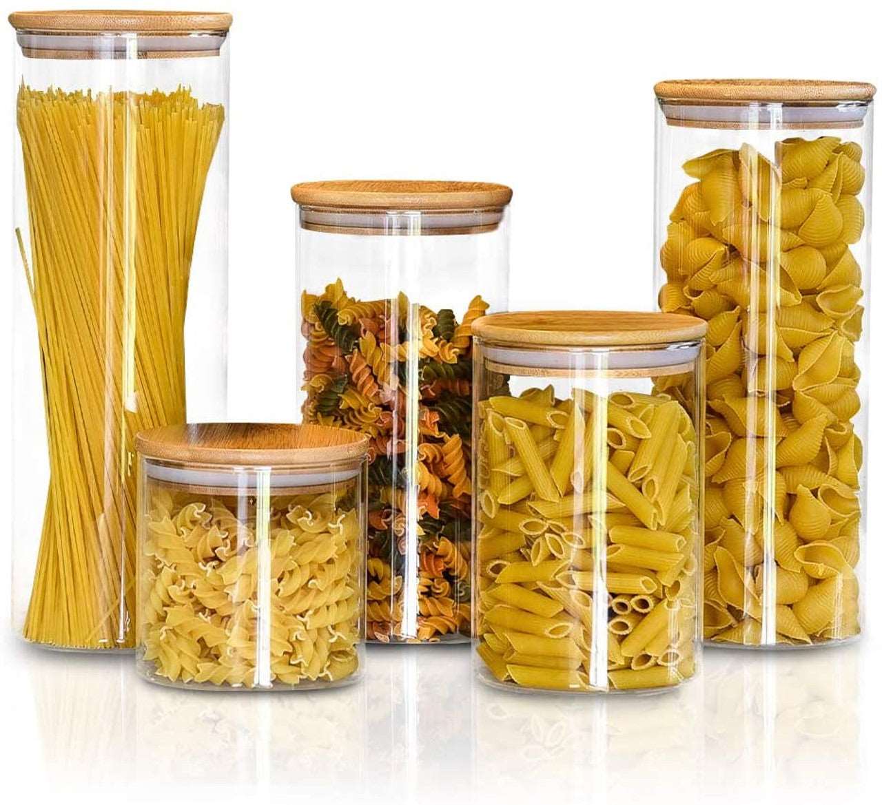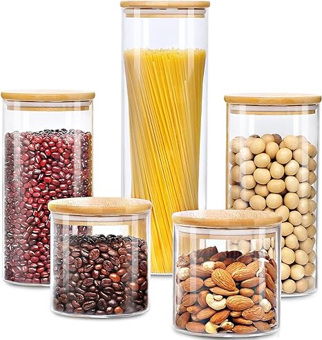 WESOUQ™ 5 Pcs Glass Jars with Bamboo Lids, Airtight High Borosillicate Container, Multi Sizes Clear Food Storage