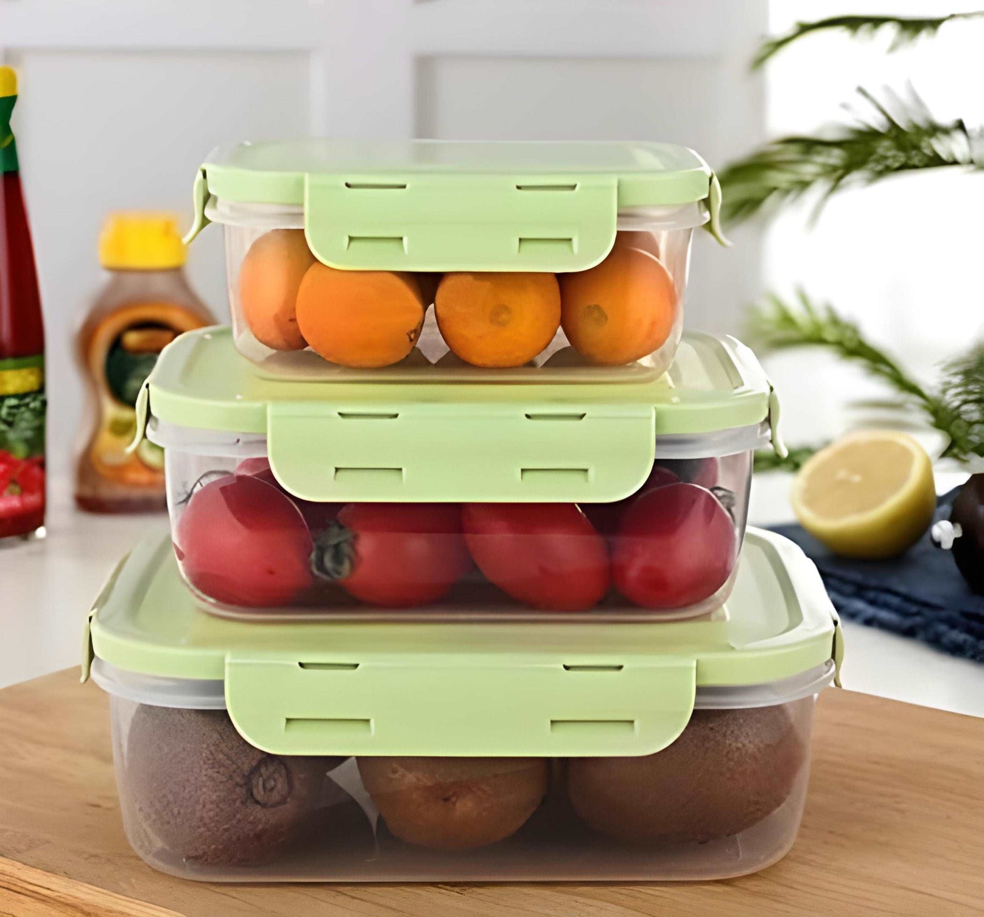 Green Rectangular Food Storage Containers with Leak-Proof Lids