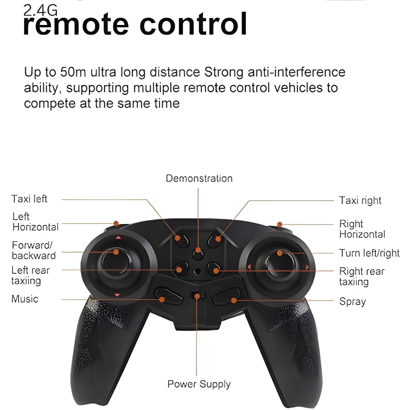 First off, let's talk about control. Equipped with a 2.4GHz remote control, this car offers precise handling and responsiveness, ensuring an exhilarating driving experience. Whether your little one is racing through obstacles or executing cool stunts, they'll have full control at their fingertips.