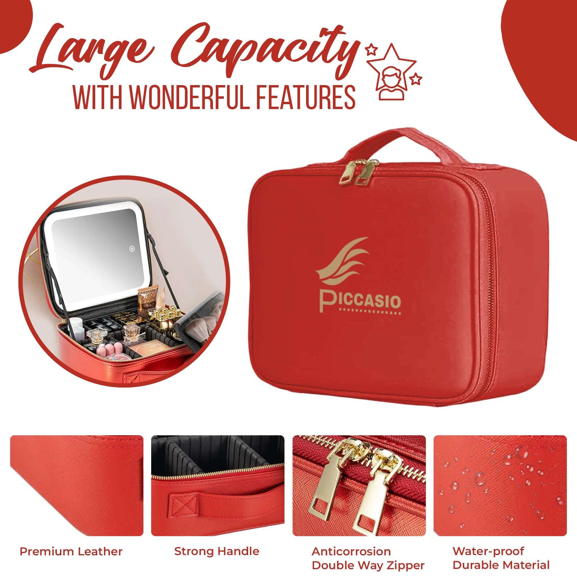 Whether you're touching up your look on the train or getting ready for a night out, our Travel Makeup Bag with Detachable Mirror and LED Lights is the perfect accessory for beauty enthusiasts on the move. 💖